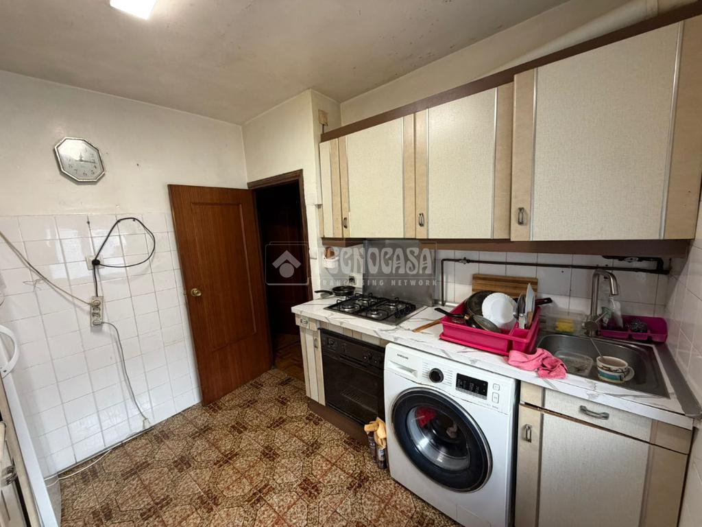 El piso dispone de una superficie construida de unos 76m2. Se compone de 3 dormitorios, baño completo, amplio salón y cocina equipada con muebles altos y bajos.